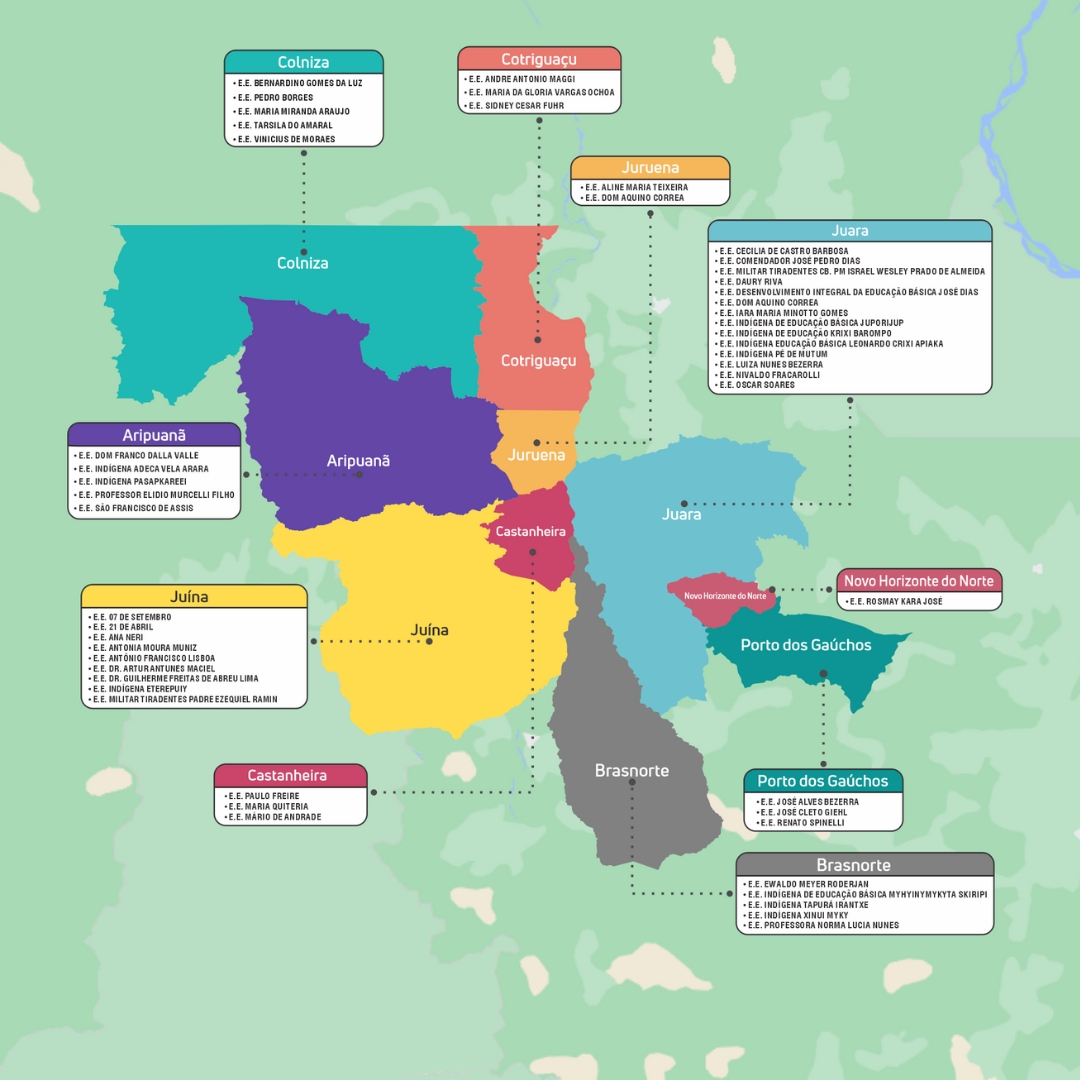A Diretoria Regional de Educação de Juína é composta por 10 municipios e 49 Escolas Estaduais, sendo elas:
